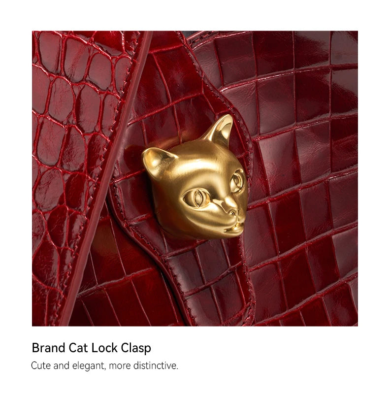 | Features | Crocodile texture, hasp closure, multiple interior pockets |