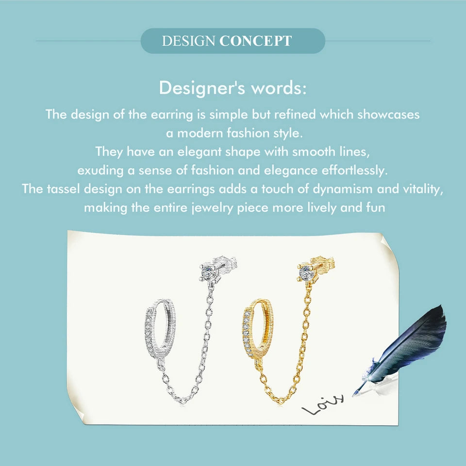 These minimal yet elegant stud earrings are crafted from 925 sterling silver and designed with a delicate double hoop and chain detail. The zircon accent adds a subtle sparkle, making them a refined choice for women who love timeless classics with a modern twist.