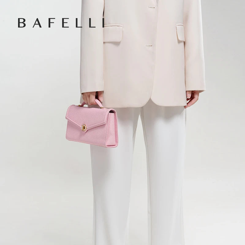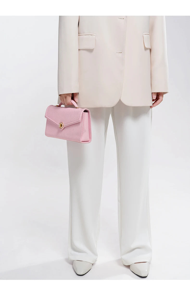 This elegant clutch bag is crafted from genuine cowhide leather for a refined evening look. Its structured shape, flap closure, and lock detail add sophistication, making it perfect for party nights and special occasions with timeless charm.