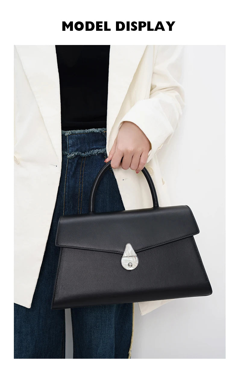 Crafted from genuine cowhide leather, this doctor-style handbag offers a bold yet refined look. Designed with a structured body, secure flap with a classic lock, and practical pocket, it's perfect for everyday sophistication and confident style.