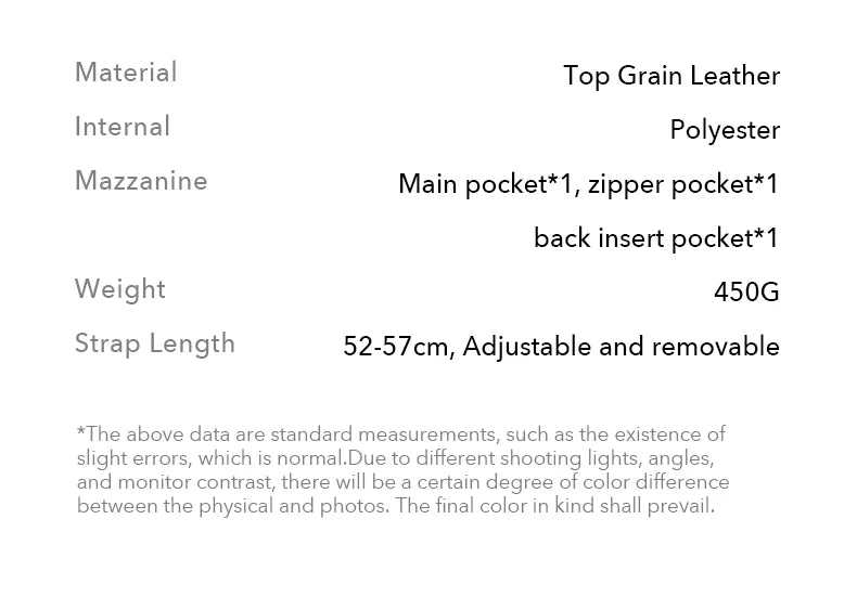 | Material | Genuine Leather, Polyester Lining |