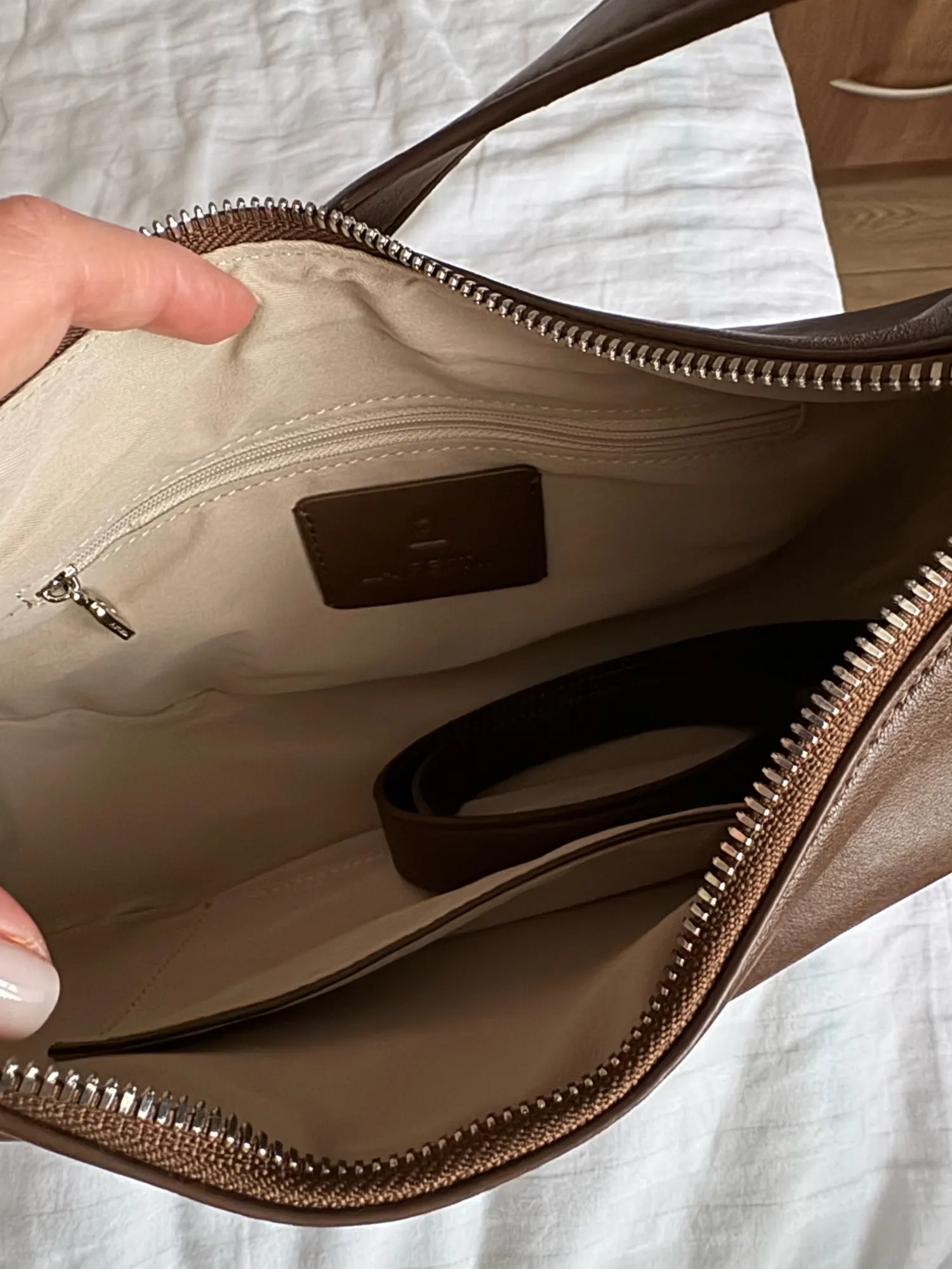 Designed with a clean, minimalist structure and an interior zipper pocket to support organised daily use for women seeking refined simplicity.