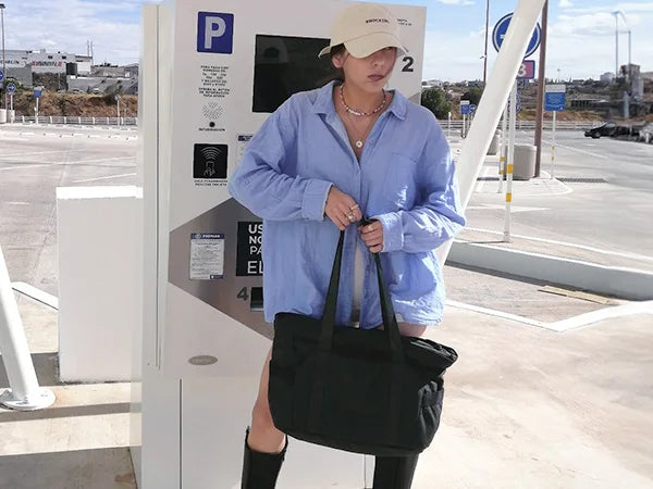 A lightweight tote crafted from milk cotton with a soft structure and secure zipper closure. Designed with multiple interior compartments and a dedicated yoga mat strap, this tote supports daily movement with clarity and comfort. Created exclusively for women who value space, balance, and practical design.