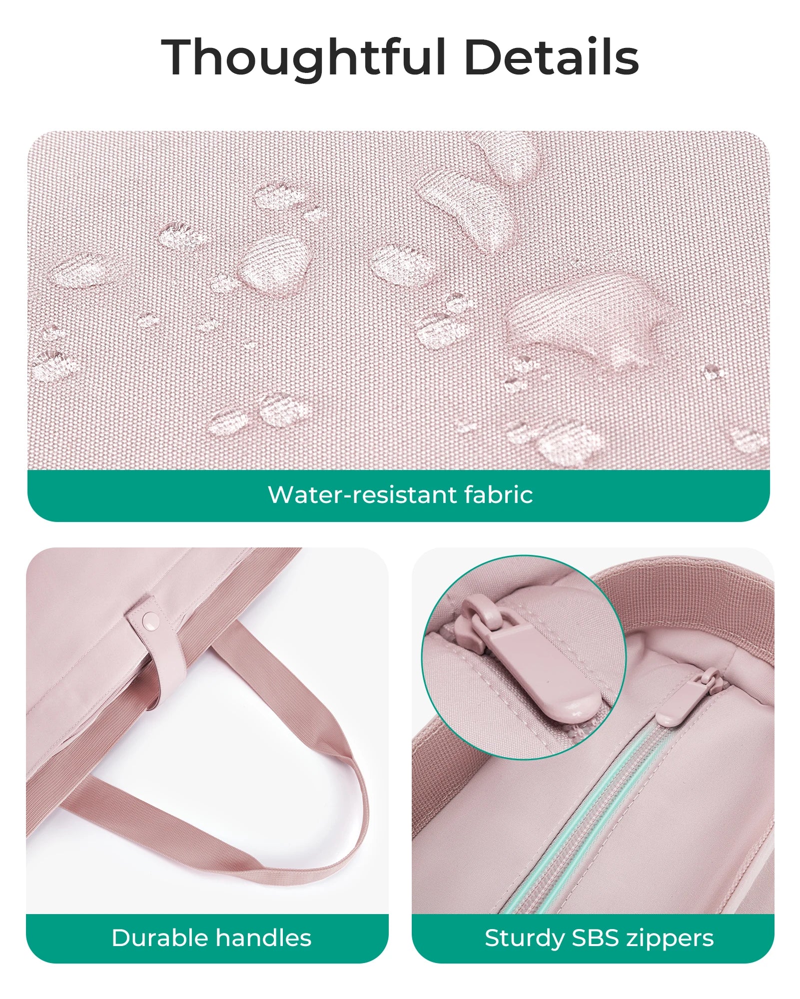 This foldable nylon tote offers a clean, spacious design with multiple inner sections that keep daily essentials neatly arranged. The soft structure and water-repellent fabric make it suitable for everyday routines and easy packing.