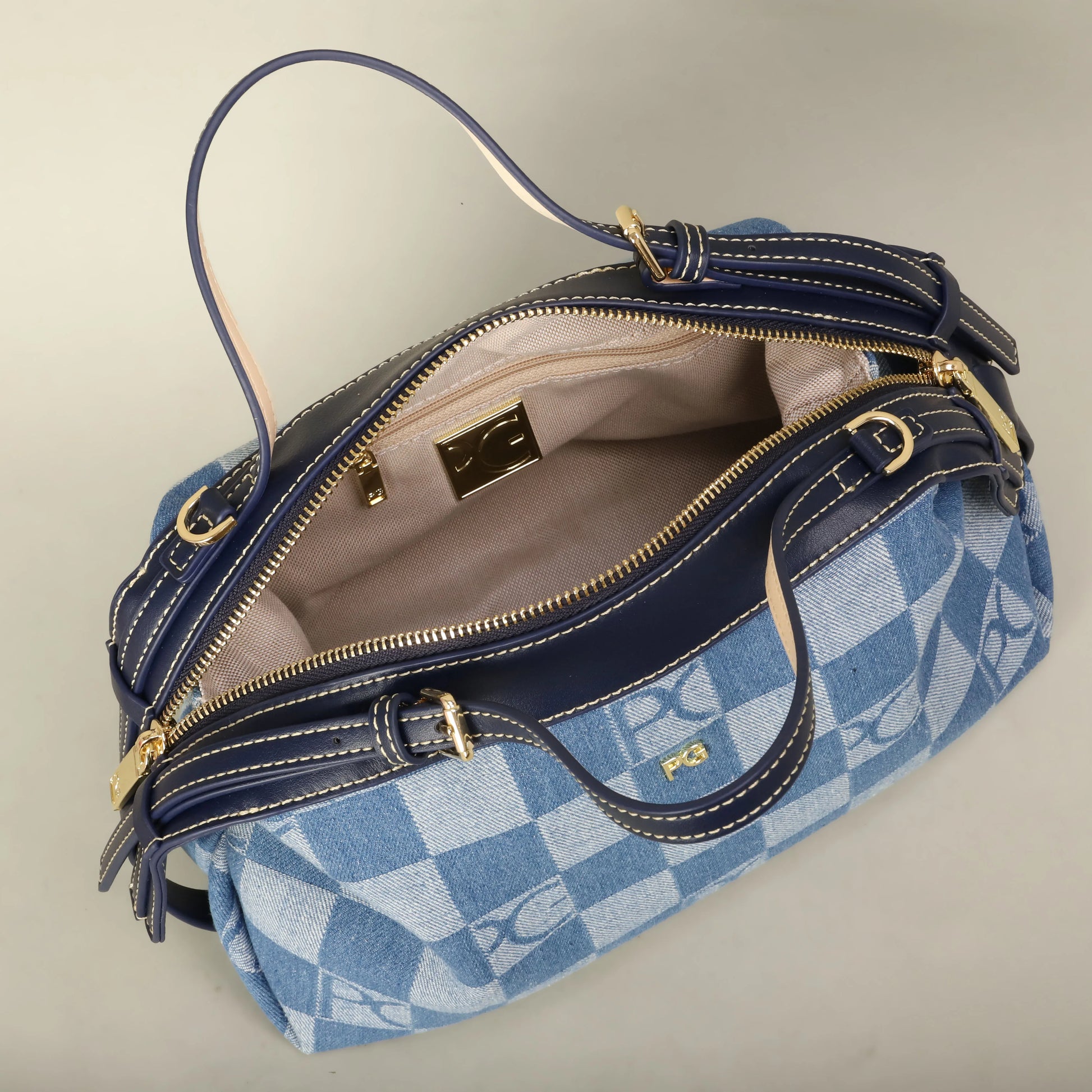 A clean, soft-structured bucket handbag crafted in durable polyester with a secure zipper and a thoughtfully organized nylon-lined interior. Designed for women only, it keeps essentials streamlined with minimal lines and practical compartments.