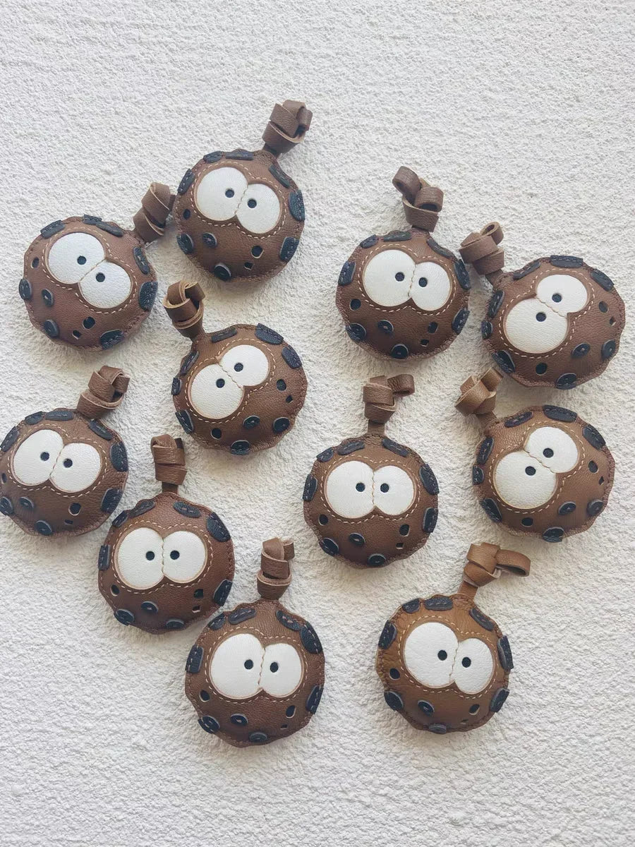 Premium Goatskin Leather Cookie Bag Charm Keychain