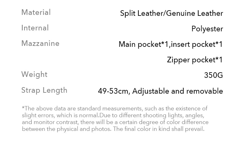 Refined and versatile, this split leather saddle bag brings effortless chic to everyday looks. Designed for women who value sophistication and practicality, it moves seamlessly from shoulder to crossbody with a clean, structured silhouette.