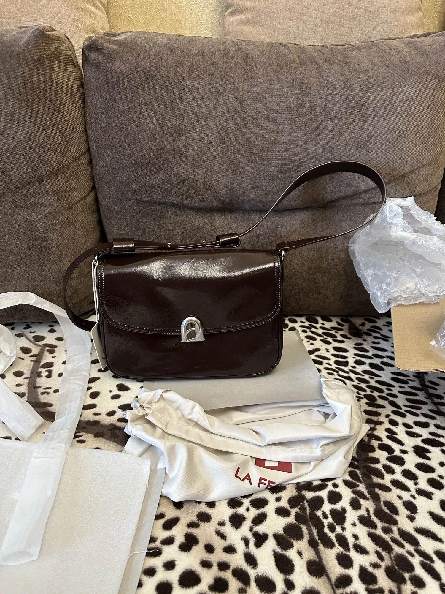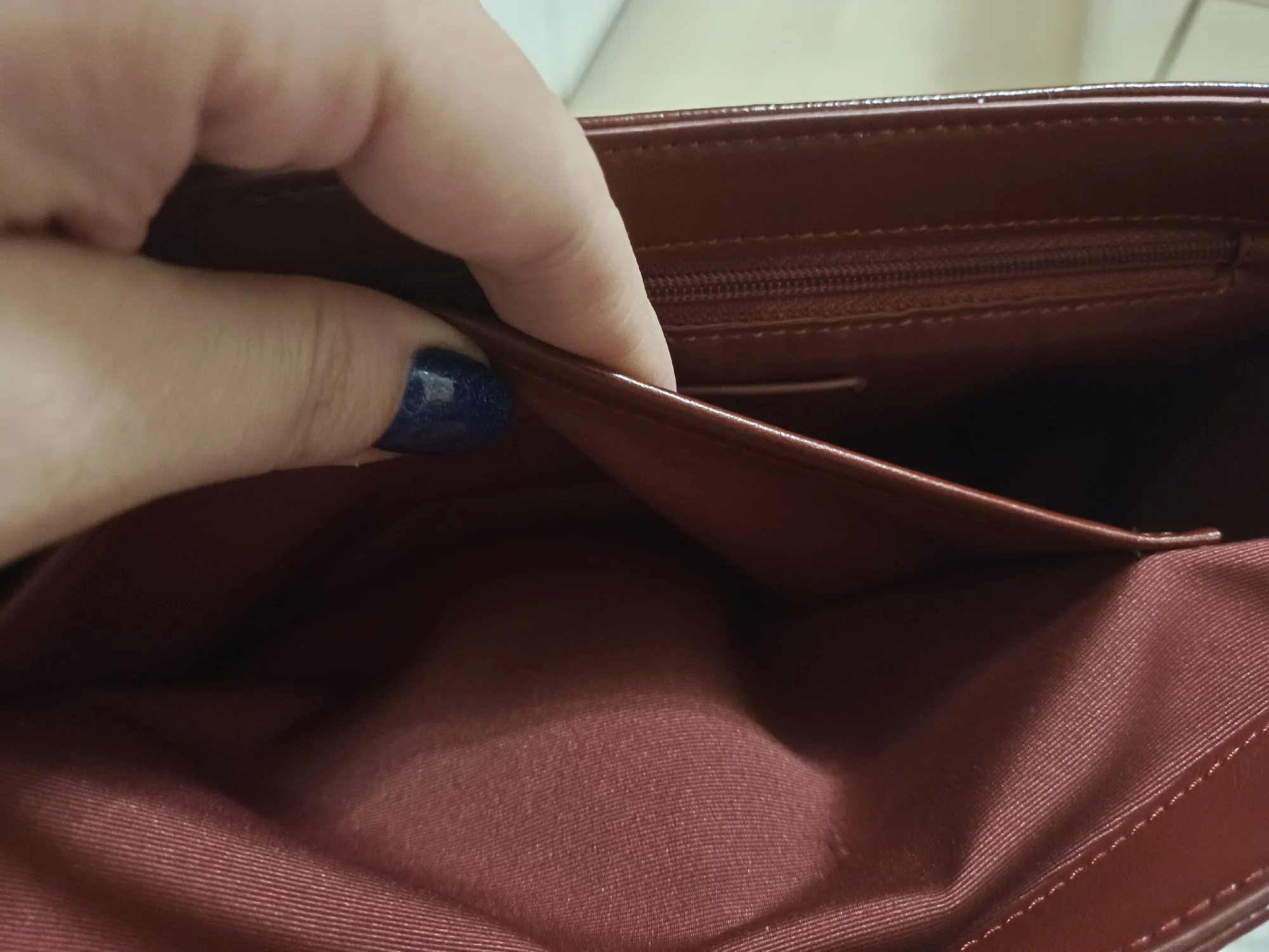 Wilfredo Batz Lovely bag, soft, looks great. Everything is as in the picture, inside there is one zippered pocket and one side pocket for documents. The clasp is not particularly convenient; you need to press it straight into the bag so that the pin fits into the hole (if there's something in the bag, it can get crushed). But this isn't critical for me. The bag was naturally packed perfectly, in a box and dust bag. I recommend it!