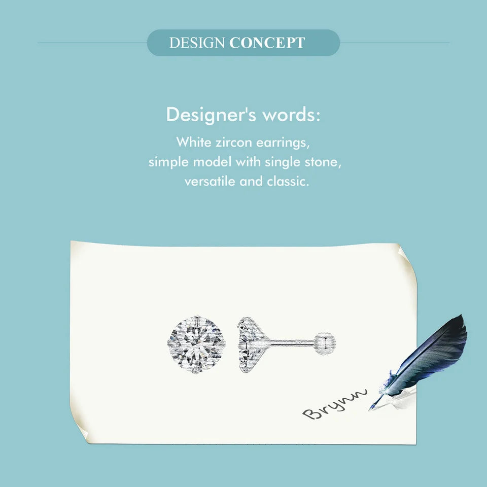 Round Zircon Stud Earrings – 925 Sterling Silver Platinum Plated